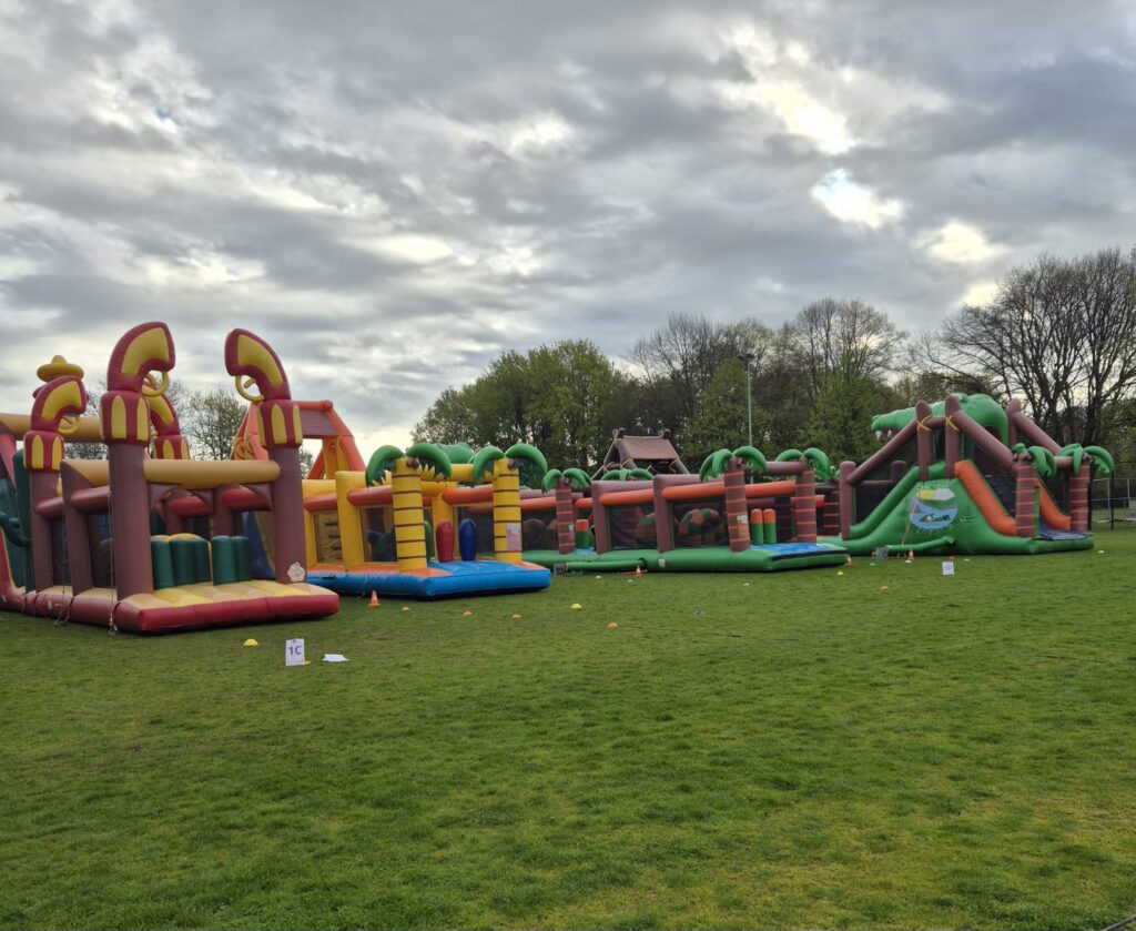 Natuurlijk waren de spring kussens en lucht stormbanen aanwezig waar de leerlingen hun energie op kwijt konden.